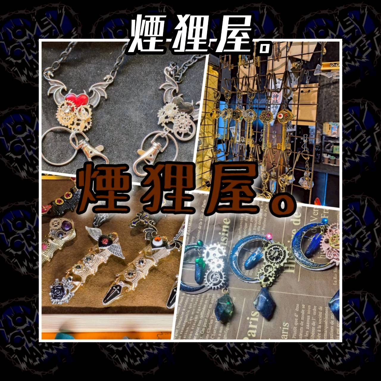 煙狸屋。 vol2. 出展者紹介 2026.01.04 “作りたいものを作る”をモットーに色んなアイテムを展開する雑貨屋。キーホルダーからインテリアから武器やアクセサリー類、変わり者でシーシャマウスピースやネックストラップ等も展開中。 Instagram X