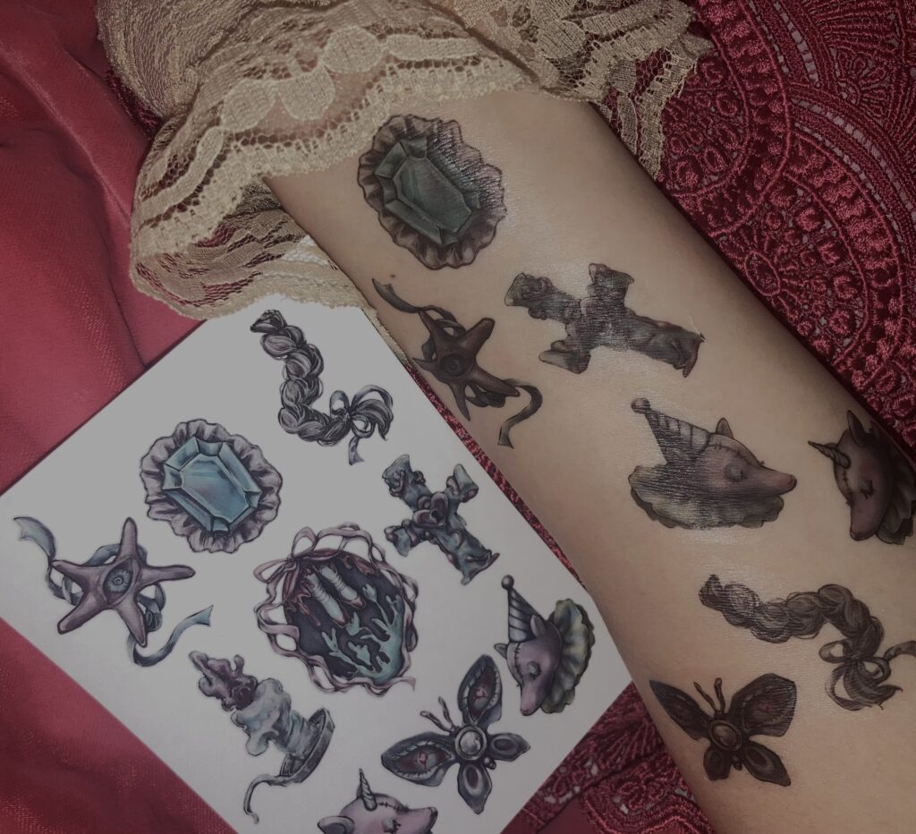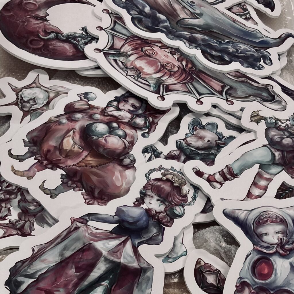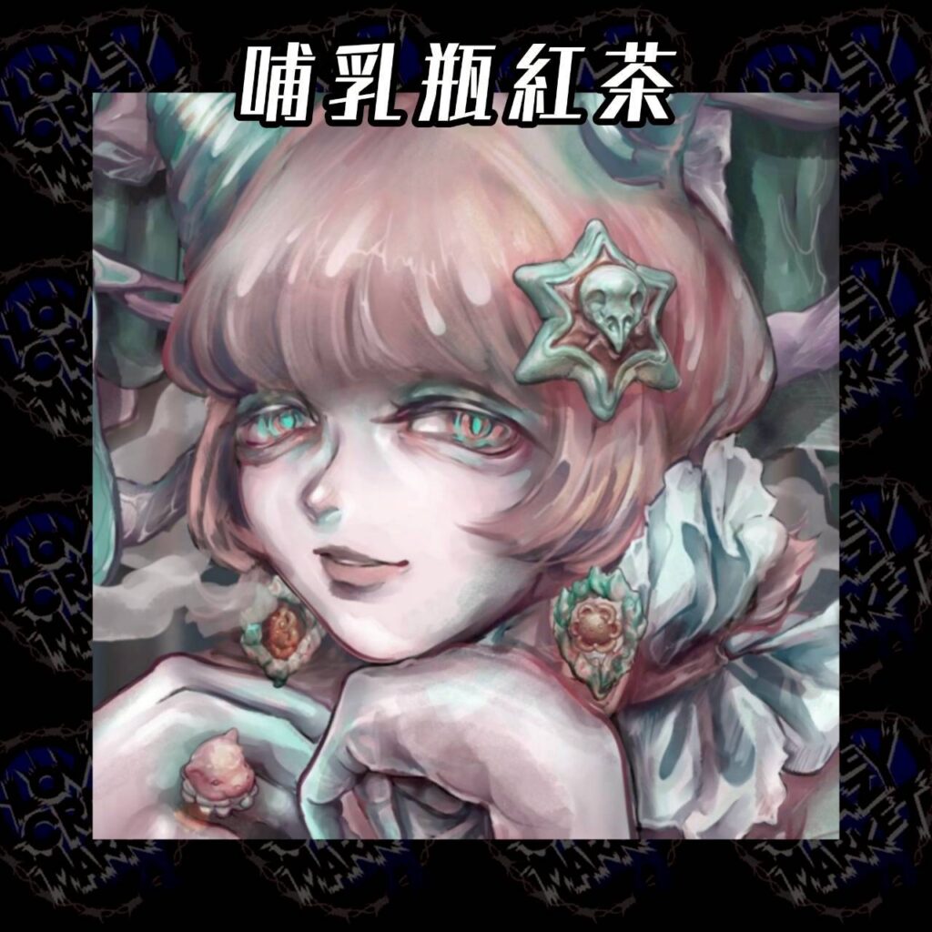 哺乳瓶紅茶 vol2. 出展者紹介 2026.01.09 美しさを求めて、作品制作をしております。ダークファンタジーな雰囲気のイラストグッズを中心に、3Dプリンターで制作したアクセサリーやオリジナル印刷のアパレルグッズをご用意しております。 Instagram X